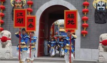 江湖文化城:吳橋雜技大世界最具特色的中心景區(qū),占地19200平方米,重現(xiàn)了當年北京天橋、天津三不管、上海大世界、南京夫子廟四個民俗文化集散地的表演特色和江湖文化景觀,讓人們充分領略吳橋雜技藝人的奇招絕活,漫步城中可以盡情欣賞各具特色的雜技、馬戲、戲法、氣功、曲藝、獨臺戲、拉洋片、馴白鼠等藝術表演,身著清朝服飾的吳橋藝人們,說著當年賣藝求生的語言,把過去藝人四海為家的生活情景展視的淋漓盡致,集中展示了清末民初的舊中國市井社會百相的文化氛圍。