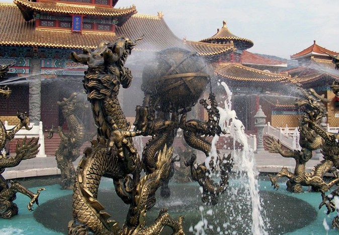 風景區(qū)由民俗寨、水竹寨、平安寨、隱士寨、東夷古寨、將軍寨、紅云寨、磴山寨、旺里寨九寨組成: 第一個景區(qū):水竹寨——經過“人間仙境”大門,進入水竹寨,通過天潤亭游覽龍,鳳,龜,蛇,麒麟五瑞雕塑,中華水鄉(xiāng)、千水臺,觀全國唯一的金瓦金鑾殿、御道過菏池,看石象、石佛、天外來客。