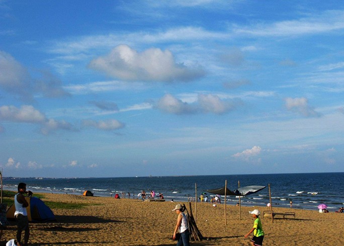 這里的海灘特別平整,每天可以看到兩次漲潮落潮奇觀:落潮時(shí)海水迅速消失,僅剩下裸露的萬(wàn)畝灘涂和來(lái)不及回到大海的魚(yú)蝦蟹貝;漲潮時(shí)海水八方齊涌,萬(wàn)畝灘涂迅即淹沒(méi),極為壯觀。