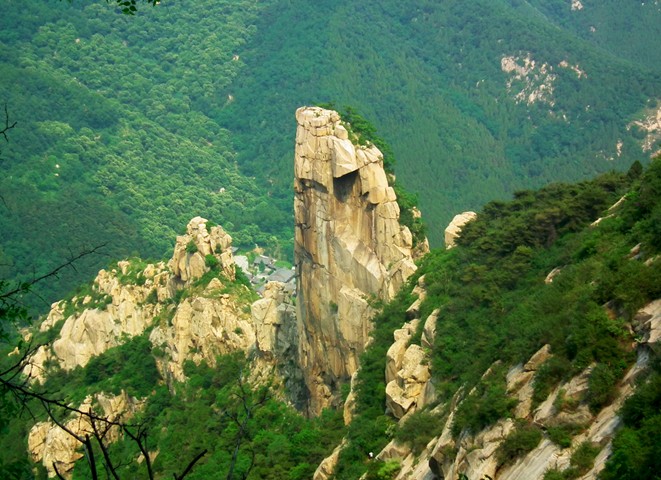 扇子崖位于泰山西溪西側(cè)的扇子崖,奇峰突兀,高聳峻峭,形如扇面,故名。崖上有明人楊博題刻摩崖石刻“仙人掌”。崖西有鐵梯,攀援可登崖巔,北眺龍角山,九女寨歷歷在目,西望傲徠峰盡收眼底。向東俯視,龍?zhí)端畮焱鹑翳偳对谖飨囊活w璀璨的明珠,閃閃發(fā)光。清人孫寶僮有詩云:“劍峰怒刺天,積鐵拔千仞;俯臨鬼谷幽,旁倚丈人峻”,的確寫出了扇子崖的風(fēng)韻。扇子崖峰極險峻,赤眉軍曾就頂設(shè)望哨。明代舉人王無欲筑室崖巔,后又結(jié)茅其下,名西山別業(yè)。民間有“打開扇子崖,金銀財寶往家抬”的傳說。1990年,依崖鑿階,修筑云梯,以便攀登。[1]峰崖交接處為山口,前有扇子崖廟,殿西有地母宮,再西為太陽廟。自正殿前沿階下谷,有真武洞,清光緒年間建,題額“玄天上帝”,內(nèi)祀真武神及金童玉女。前為會仙庵舊址,今房基、石廟尤存。又東路旁有巨石,上有清康熙初年線刻一老僧坐蓮修身。廟南隔溪相望有弄水巖,雙峰崛起,澗水東流,至西百丈崖下注西溪。山口后是長谷絕澗,名青桐澗。版權(quán)所有山東聊城聊之旅國際旅行社有限公司,轉(zhuǎn)載必究!明清時山民多在此采青桐芽制茶,名女兒茶。澗北有壺瓶崖,危崖萬丈,突兀類壺瓶狀而名。