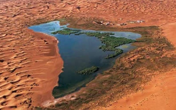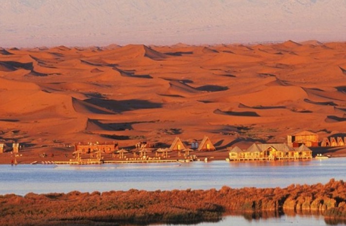 騰格里沙漠月亮湖旅游區(qū) 位于中國內(nèi)蒙古阿拉善盟境內(nèi)騰格里沙漠腹地,月亮湖是距離國內(nèi)各大城市半徑最短的沙漠探險營地,是現(xiàn)代都市人尋求緊張競爭生活之外的驚險刺激與徹底放松身心的最佳游程。月亮湖有三個獨特之處:一是形狀酷似中國地圖:站在高處沙丘一看,一幅完整的中國地圖展現(xiàn)在眼前,蘆葦?shù)姆植几菍⒏魇^(qū)一一標(biāo)明;二是湖水天然藥浴配方:面積三平方公里的湖水,富含鉀鹽、錳鹽、少量硭硝、天然蘇打、天然堿、氧化鐵及其它微量元素,與國際保健機構(gòu)推薦藥浴配方極其相似。