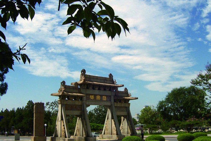 岱宗坊位于岱廟北(岱宗大街北側(cè)的紅門路南首),為一跨道石坊,登泰山由此開始,明嘉靖年間建。岱宗坊建于臺基上,四柱三門式石坊,造型粗獷、簡潔,額題篆書“岱宗坊”三個金色大字,有標(biāo)志導(dǎo)向作用。清雍八年(1730年)間重修。坊前有雍正九年《重修泰山上諭碑》和《泰山記碑》東西相峙。 岱宗坊是一座流傳有許多美麗的神話的四柱三間式古代牌樓。