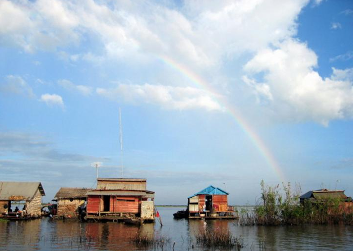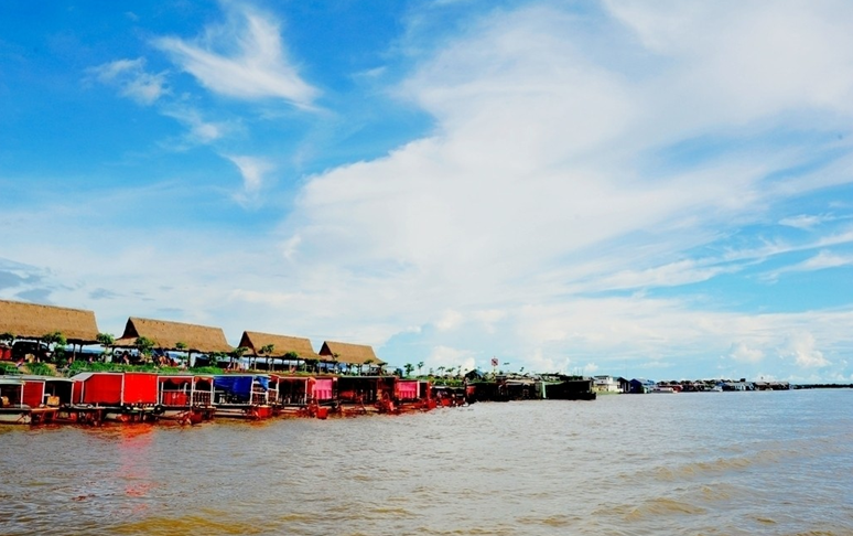 洞里薩湖又名金邊湖,位于柬埔寨境內(nèi)北部,呈長形位于柬埔寨的心臟地帶,是東南亞最大的淡水湖泊。湖濱平原平坦、廣闊,長500千米、寬110多千米,西北到東南,橫穿柬埔寨,在金邊市與貫穿柬埔寨的湄公河交匯。它像一塊巨大碧綠的翡翠,鑲嵌在柬埔寨大地之上,為高棉民族的發(fā)展與繁榮提供了堅實的資源保障,是柬埔寨人民的“生命之湖”。