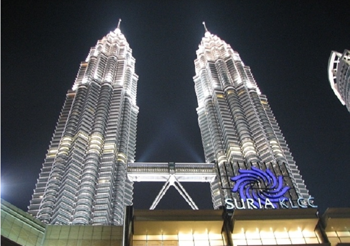 吉隆坡石油雙塔坐落于吉隆坡市中市(Kuala Lumpur city centre) 簡(jiǎn)稱KLCC計(jì)劃區(qū)的西北角,屬于此計(jì)劃區(qū)的第一階段工程。曾經(jīng)是世界最高的摩天大樓,直到2003年10月17日被臺(tái)北101超越,但仍是目前世界最高的雙塔樓,也是世界第四高的大樓。