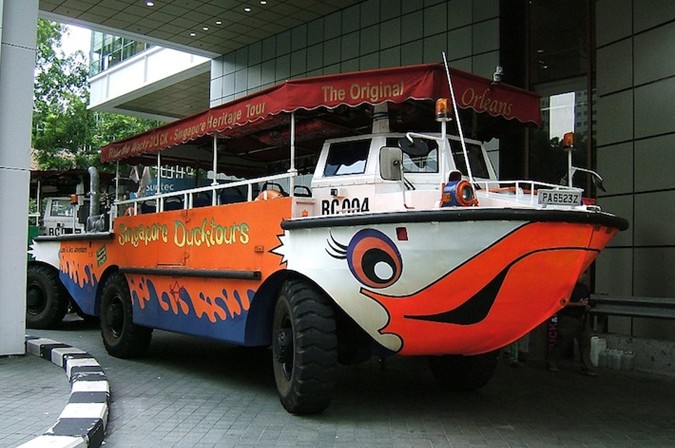 “鴨子船”極受游客歡迎,香港人愛(ài)把乘“鴨子船”沿新加坡河的觀光稱為“游車河”,在新達(dá)城乘坐鴨子船,陸地將經(jīng)過(guò)世界大戰(zhàn)紀(jì)念碑,在水上欣賞薛爾思橋及魚(yú)尾獅的噴水景觀。