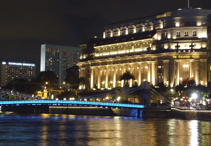 新加坡河上有十來座橋,其中安德遜橋、加文納橋和埃爾金斯橋是最著名的3座橋。佇立在浮爾頓酒店前的加文納橋,還有個(gè)外號(hào)叫“烏龍橋”。