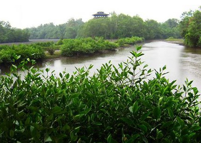 公園是由一個游人中心和三條人行道組成的。這三條人行道都有幾公里長,為了保存自然風味,它們都是由碎石細沙鋪成的,每一條路都能把游人帶到不同的風景點,如傳統(tǒng)養(yǎng)蝦池淡水池等。為了使生態(tài)環(huán)境的破壞程度降到最低點,園內所有設施,如橋梁、亭子、觀鳥屋等都用木頭建造,園里的道路也是原始的,沒鋪柏油或石板,絕大部分的花木也都是自然繁殖的。
