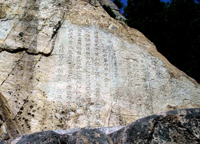 大基山海拔478米,自山谷至山頂分布歷代摩崖刻石24處。北魏光州刺史、著名書法家鄭道昭于公元512年在此山留下寶貴題刻12處,均刻在山內(nèi)險峻的摩崖之上,主要刻石有《登大基山詩》、《中明之壇》等,同云峰山鄭道昭刻石成一體,同為國際書法旅游專線,每年接待日本書法團體約600人次,1998年被國務(wù)院定為國家級重點文物保護單位。