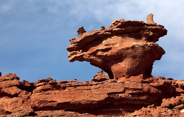 阿左旗敖倫布拉格境內(nèi),不僅有“人根峰”、“西部夢(mèng)幻峽谷”,還有神水洞、牡門洞、紅塔寺、烽火臺(tái)、貝爾湖、布勒廟、將軍墓等數(shù)十處自然景觀和人文景觀,而且,在這里還可以欣賞到大漠“海市蜃樓”。從敖倫布拉格到巴盟磴口縣僅60多公里的砂石路,到巴彥浩特近300公里,路況較好,沿途有幾個(gè)蘇木鎮(zhèn),吃住不成問題,非常適合有車的朋友進(jìn)行大漠自助旅游。