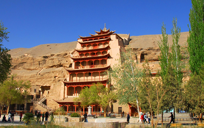 莫高窟地處絲綢之路的一個(gè)戰(zhàn)略要點(diǎn)。它不僅是東西方貿(mào)易的中轉(zhuǎn)站,同時(shí)也是宗教、文化和知識(shí)的交匯處。莫高窟的492個(gè)小石窟和洞穴廟宇,以其雕像和壁畫聞名于世,展示了延續(xù)千年的佛教藝術(shù)。