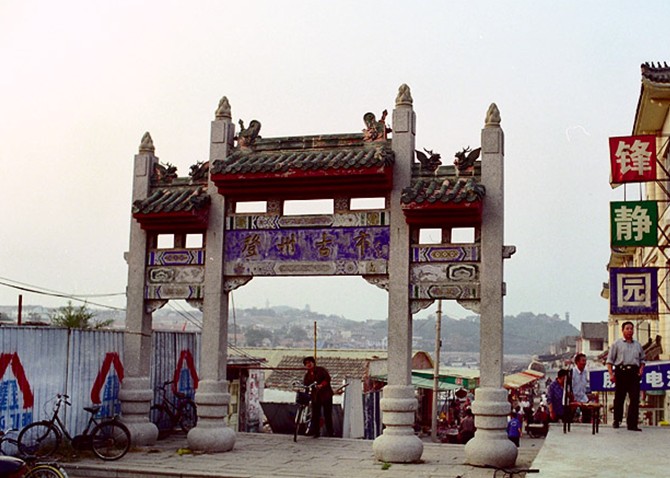 登州古市一條街位于小海東沿,路面為花崗巖塊石鋪砌,東西寬6米,南北長500余米,南端立仿古牌坊,坊額是書法家吳作人題的“登州古市”,坊柱楹聯(lián)為“供饗十洲三島客,歡迎五湖四海人”。仿古園林建筑登州錢莊、常生客棧、水城魚行、古市飯店、古市商場,仿古商貿(mào)店鋪等,建在路東側(cè)占地18504平方米。水城舊為登州古港,歷代商賈云集,市場繁盛。不過因時代久遠(yuǎn),已湮沒多年。1984年始在此興建登州古市一條街,建有客棧、飯鋪、錢莊、商場、說書場、花鳥市,1989年后,每年一屆的蓬萊經(jīng)貿(mào)懇談會和1991年世界旅游日登州古市慶典都在此舉辦活動,90年代以來,古市一條街臨海一側(cè)辟為旅游紀(jì)念品市場,并以“古”為特點,古裝、古樂、古玩、古店再現(xiàn)了清明時代古市的面貌。