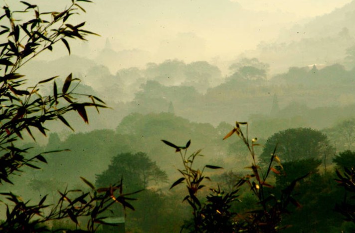 海陽(yáng)云頂自然風(fēng)景旅游區(qū)位于海陽(yáng)市盤(pán)石店鎮(zhèn)大莊村西側(cè),招虎山北麓。這里群山環(huán)抱,古樹(shù)參天,空氣清新,泉多水清,翠竹叢生,周?chē)?800畝山嵐至今保持著良好的生態(tài)環(huán)境,近千種動(dòng)植物生機(jī)勃勃。尤其令人驚嘆的是這里竟然生長(zhǎng)著500余畝郁郁蔥蔥的竹子。據(jù)林業(yè)專(zhuān)家稱(chēng),這片江北最大的竹林,起源于何時(shí)已無(wú)從考究。但在北緯37º地區(qū)能有如此規(guī)模的竹林,舉世罕見(jiàn)。