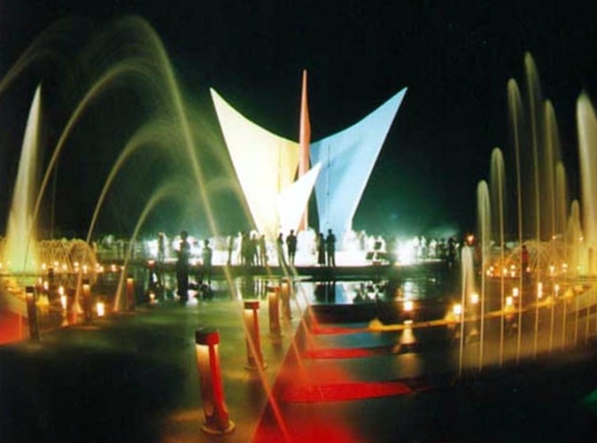 位于煙臺經(jīng)濟技術開發(fā)區(qū)金沙灘海濱公園正門處,為一圓形階梯狀構筑,整個廣場噴泉灑珠,青草滴翠,花紅樹綠,烏囀鶯啼,使人仿佛置身天上的街市,神奇無比。北部最高點矗立著一組風帆群雕,在碧海藍天間顯現(xiàn)出勃勃生機,象征著開發(fā)區(qū)在改革開放的大潮中乘風破浪,一帆風順;入夜,這里華燈齊放,燦爛輝煌,風帆通體發(fā)光,昂揚向上,寓意著光輝的前景和時代的精神。