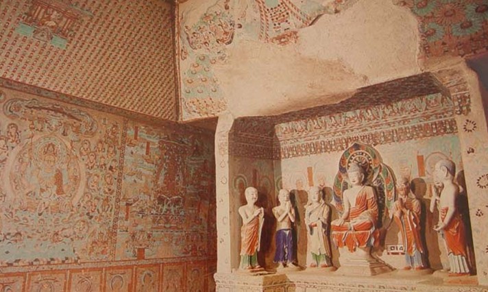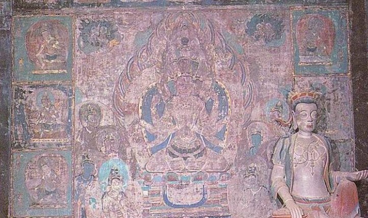 東千佛洞現(xiàn)存23窟,而留有壁畫(huà)和泥塑造像者僅10窟。其中西夏6窟、元1窟、清3窟。壁畫(huà)總面積486.7平方米。彩繪佛、道二教壁畫(huà)290幅,人物工144身,佛、道二教泥塑像46身。