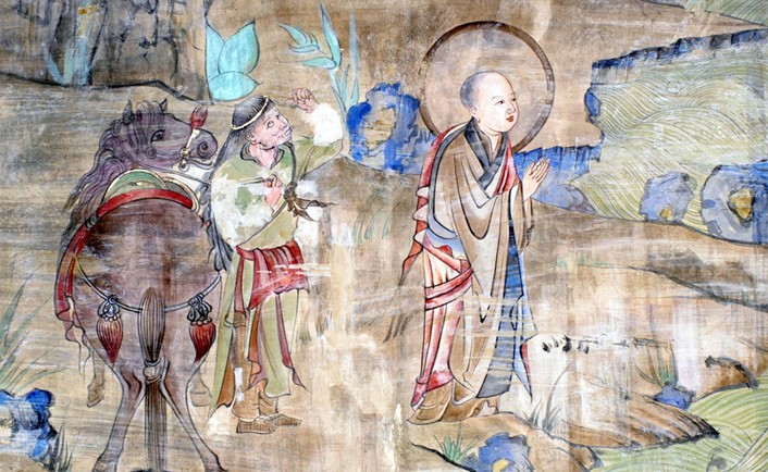 5窟前室東西壁北側(cè)的兩幅《文殊變》、《普賢變》(東壁《文殊變》已脫落)中的文殊、普賢、青獅、白象、山水、團(tuán)云相對(duì)稱(chēng)。其繪畫(huà)手法則粗獷大筆,與2窟細(xì)致入微的線(xiàn)描手法迥然不同。西壁南側(cè)為《八塔變》。塔下婆羅樹(shù)左右對(duì)稱(chēng)。有趣的是,塔右側(cè)婆羅樹(shù)上倒掛著4只頑皮可愛(ài)的猴子在井中撈月。畫(huà)中套畫(huà),景中套景,版權(quán)所有山東聊城聊之旅國(guó)際旅行社有限公司,轉(zhuǎn)載必究!構(gòu)思巧妙。兩壁下沿大規(guī)模供養(yǎng)人畫(huà)像與題名接銜,是考證西夏人開(kāi)窟繪畫(huà)的直接依據(jù)。