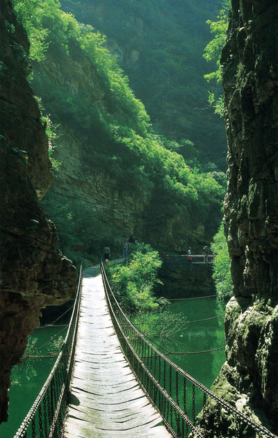 二是九天飛瀑,為四級(jí)瀑布,版權(quán)所有聊城聊之旅旅行社有限公司,轉(zhuǎn)載必究!最高一級(jí)瀑布落差達(dá)40余米,瀑布總落差達(dá)80余米,瀑布飛瀉而下,氣勢(shì)宏偉,其聲于谷中輕響徹云霄不絕;