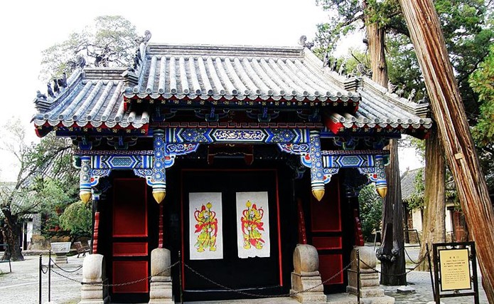 孔廟的門(西邊門)與泮宮(東邊門)皆為重詹式牌樓,屋脊作燕尾起翹,中辟拱門,兩側(cè)為圓窗,是孔廟主要的入口,分列左右;酒泉街上一座高大的照墻,即萬仞宮墻,墻的典故出自《論語》,為孔廟所必備,照墻內(nèi)壁彩繪麒麟則象征吉祥之意。