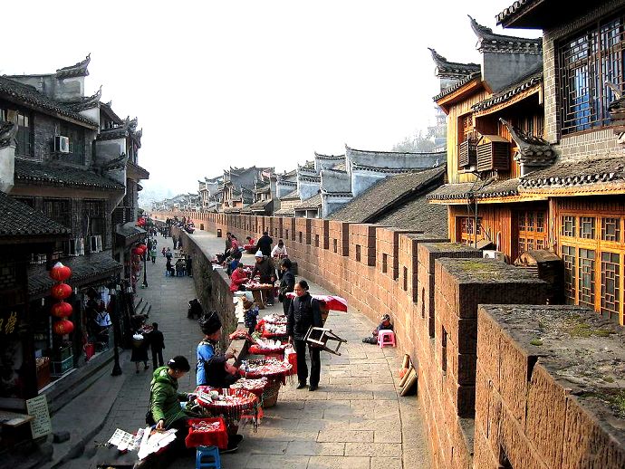 寬不足5米的青石版街,自道門口往西,經(jīng)十字街、東正街、西正街、回龍閣、營哨沖、陡山喇、接官亭、沈從文墓地直至天下第一泉,全長3000多米。是鳳凰最繁華的商業(yè)街。道兩旁的建筑、街巷,都能讓您飽覽古鎮(zhèn)的萬種風情。