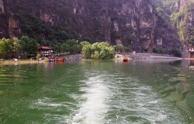 泉河頭風(fēng)景區(qū),主要有上龍灣、 泉河頭風(fēng)景區(qū),主要有上龍灣、下龍灣泉群和青龍山古建筑群組成。“半畝方塘碧澗深,高山流水澈清音”。乍離水源緊缺的博山城,見到這里水氣飛霧,泉瀑涌流,游人格外興奮。泉河一帶,寬闊的水面上輝映著青龍山的倒映,水清見底,魚游淺灘,鵝鴨嬉戲,令人耳目一新。兩處泉源——上龍灣和下龍灣,被疏浚整修成十幾米見方的深水池,四周石柱回護,池深水綠,泉眼密布,噴玉吐珠,常年不竭,且水溫常年保持在15℃左右,適宜養(yǎng)殖熱帶魚類。市、區(qū)水利部門在此投資建成數(shù)畝魚池,飼養(yǎng)從國外引進的虹鱒魚。河畔的銀灰色建筑是新近落成的虹鱒魚酒樓。人們在游山玩水之余,至此品嘗魚鮮,別有一番情趣。從下龍灣沿山路盤旋而上,可見一組古建筑鑲嵌在懸崖峭壁之間,掩映在綠樹繁花之中。頭一座是舊時人們祈禱風(fēng)調(diào)雨順、五谷豐登的龍王廟。再拾級東攀,至山門——一座磚砌單檐三門牌樓,高寬約6米,凌空矗立,上書“清音萬古”。進牌樓,迎面是幢規(guī)模較大的殿宇——三宮殿。據(jù)殿前石壁透龍碑記載,此殿系明萬歷十二年修建,距今已400余年。這“透龍碑”浮雕石龍,光滑如鏡。當(dāng)?shù)赜惺酌裰{:“青龍山前一條河,既有鴛鴦又有鵝,抬頭望見透龍碑,一眼看到太陽窩”。傳說人摸石碑可逢兇化吉。 晚霞夕映,碑端能照見高聳的無影山。繞過三宮殿,穿過石砌洞道,來到這組古建筑的中心——涼亭。該亭四角八柱,半空飛檐,雄踞山腰。石柱上刻有“炎天無暑氣,清夜有泉聲”的詩聯(lián)。登亭遠眺,版權(quán)所有山東聊城聊之旅國際旅行社有限公司,轉(zhuǎn)載必究!田園阡陌,歷歷在目,淄水長流,盡收眼底。從涼亭上攀,則是一依山傍崖的雙層閣樓,上層是白衣閣,底層過一拱門便是青龍洞,這洞外闊內(nèi)窄,深邃曲折,怪石嶙峋。白衣閣東側(cè),也是一雙層建筑,圓柱飛檐,上為觀音殿,下為道房,其間亦有洞口通后山。這組古建筑依勢構(gòu)造,錯落有致,布局精巧。這些景觀和建筑是泉河附近群眾集資修復(fù)的,基本保持了明清建筑的風(fēng)格。