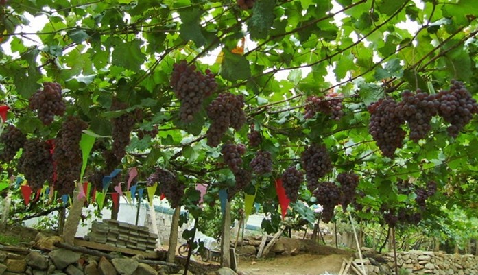 風(fēng)景秀麗的葡萄溝,以盛產(chǎn)優(yōu)質(zhì)葡萄而聞名中外。1994年溝里種植葡萄315.6 公頃,生產(chǎn)鮮葡萄8601噸。這里主要種植無核白葡萄,還有馬奶子、紅葡萄、喀什哈爾、日加干、瑣瑣等 13個(gè)品種。其果實(shí)呈球形、卵形、橢園形等,有的葡萄晶瑩如珍珠,有的鮮艷似瑪瑙,而有的綠若翡翠。版權(quán)所有山東聊城聊之旅國(guó)際旅行社有限公司,轉(zhuǎn)載必究!那五光十色、翠綠欲滴的鮮葡萄,令人垂涎不止。尤其是這里生產(chǎn)的無核白葡萄、皮薄、肉嫩、多汁、味美,營(yíng)養(yǎng)豐富,素有“珍珠”美稱,其含糖量高達(dá)20-24%,超過美國(guó)加利福尼亞州的葡萄,居世界之冠。用無核白鮮葡萄晾制的葡萄干,含糖量高達(dá)60%,被人們視為葡萄中的珍品。