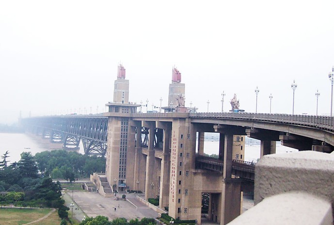被列為南京金陵四十景之一,正橋的路欄上,公路引橋采用富有中國(guó)特色的雙孔雙曲拱橋形式。公路正橋兩邊的欄桿上嵌著200幅鑄鐵浮雕,人行道旁還有150對(duì)白玉蘭花形的路燈。潔白雅致。南北兩端各有兩座高70米的橋頭堡,堡內(nèi)有電梯可通鐵路橋、公路橋及橋頭堡上的瞭望臺(tái)。堡前還各有一座高10余米的工農(nóng)兵雕塑。南堡下是一個(gè)風(fēng)景秀麗的公園。