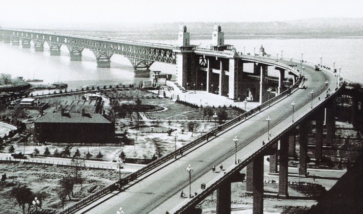 1960年1月18日正橋9號(hào)墩鋼圍籠浮運(yùn)下水,宣布南京大橋正式開(kāi)工。之后,南京大橋正橋9橋墩陸續(xù)開(kāi)工,至1966年4月27日全部竣工。
