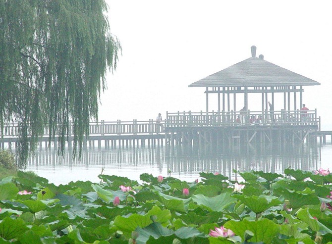 三為菱洲,洲東瀕臨鐘山,有“千云非一狀”的鐘山云霞,故有“菱洲山嵐”的美名。四為梁洲,梁洲為五洲中開辟最早、風(fēng)景最勝的一洲。一年一度的菊展,傳統(tǒng)而壯觀,故有“梁洲秋菊”的美譽(yù)。五為翠洲,翠洲風(fēng)光幽靜,別具一格。長堤臥波 ,綠帶燎繞。蒼松、翠柏、嫩柳、淡竹,構(gòu)成“翠洲云樹”特色。