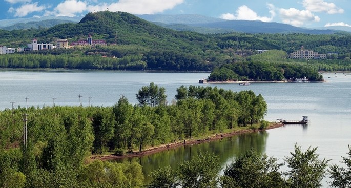 二龍山是國(guó)家AAAA級(jí)旅游區(qū),位于哈爾濱市東50公里處,東經(jīng)127度27分41秒,北緯45度45分59秒,坐落在古城賓州西南。景區(qū)占地25平方公里,一湖碧水,三面環(huán)山,自然風(fēng)光,美不勝收。這里既有二龍戲珠、長(zhǎng)龍臥波、銀峰插翠、碧波唱晚等十大麗景,又有寶島飛虹、湖面飛魚(yú)等四大奇觀。是消暑、度假、休閑、療養(yǎng)的好地方,年接待中外游客近百萬(wàn)人次。