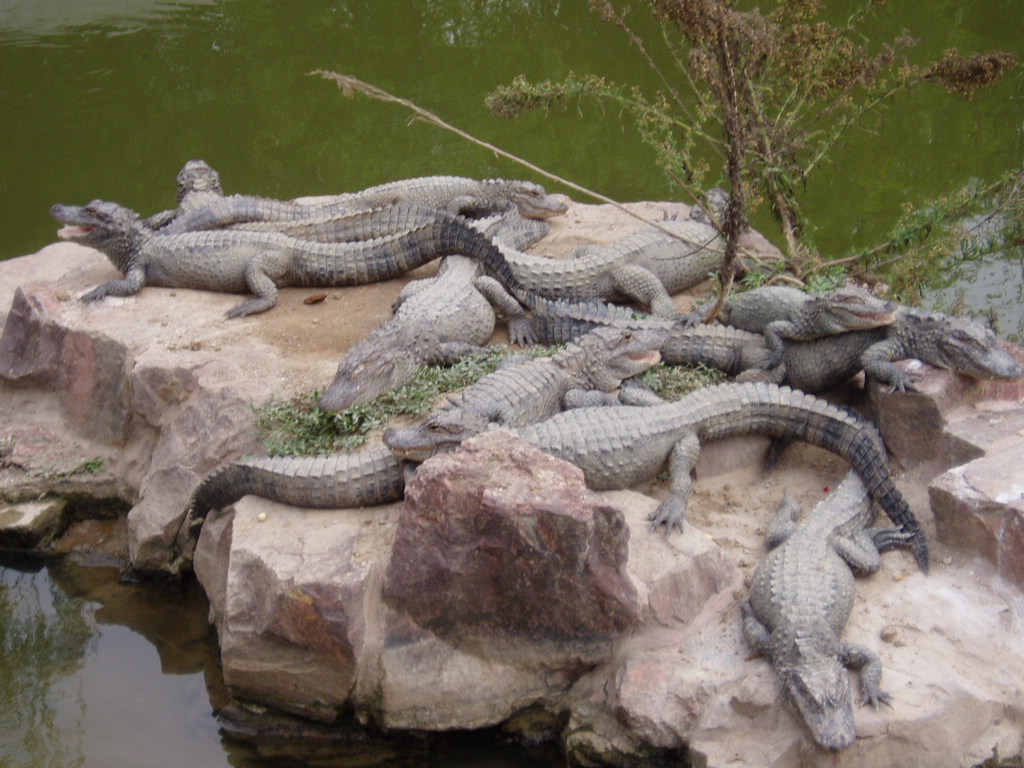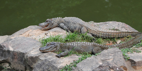 上海野生動(dòng)物園的鱷魚(yú)島現(xiàn)有揚(yáng)子鱷31條。