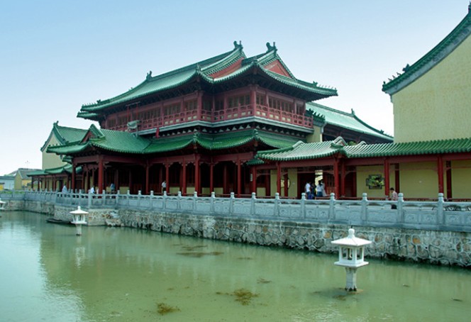 鄭板橋紀念館亦稱興化市博物館,位于城區(qū)中心地段,占地6000多平方米,粉墻黛瓦,曲廊環(huán)繞,系三層仿古建筑。館內庭院中板橋塑像矗立,奇石修竹輔之,有水池、池邊嵌石,犬齒相依,參差有致,逢夏季,池內睡蓮盛開,紅鯉穿梭其間,別有一番情趣。館內主要有《鄭板橋生平及藝術成就》、《興化歷代名人》、《施耐庵文物史料陳列》等陳列展覽。處正南的四牌樓上懸掛47塊匾,記載了興化歷史上74位前賢的事跡,為后人所景仰,匾上題字都出自當代著名書法家之手,版權所有山東聊城聊之旅國際旅行社有限公司,轉載必究!具有很高的藝術欣賞價值。 故居北屋掛有一幅漆畫,漆畫兩側的對聯(lián)是鄭板橋在范縣任上所作:“秋從夏雨聲中入,春在寒梅蕊上尋。”原在東西兩側的蘭石圖和墨竹圖都是清代原物,現(xiàn)都已被收藏。