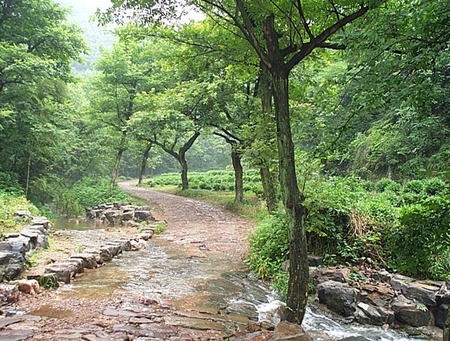 九溪十八澗景色天然,少有匠氣,"溪水因山而曲折",忽左忽右,其中6處溪流漫過山徑,上置石步,游人可涉水溪中,也可自石上鶴步而過,各有意趣。清俞曲園有詩:"重重疊疊山,曲曲環(huán)環(huán)路,叮叮咚咚泉,高高下下樹。"身歷其境,塵襟為之一洗,更有一種人在畫中游的感覺。