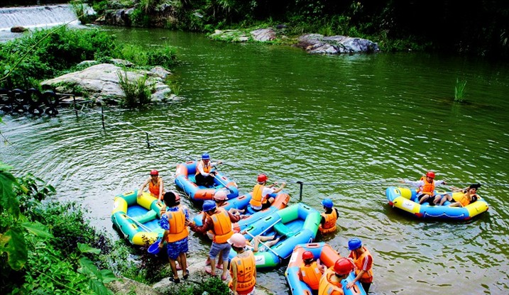 五指山大峽谷漂流全程約6公里,需時80分鐘。激蕩險灘峽谷,超凡灑脫,似神仙游于天地之間。在全長9公里的河道上,分成上下兩個區(qū)域,上段河道水勢較險,險灘較多,為探險漂流河段,適合年輕人漂流,漂程6公里,漂時2小時左右。下段河道水勢較緩,落差小,無危險性,老少皆宜,全程3公里,漂時1小時左右。