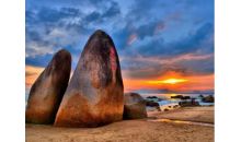 觀日巖位于蜈支洲島的東南懸崖處。站在巖上憑海臨風(fēng),俯瞰全島,遼闊的南海盡收眼底。懸崖下面,怪石嶙峋。 風(fēng)平浪靜之時,乘快艇環(huán)島游,石景千奇百怪,觀日巖像一尊天然大石佛,面向大海,日夜修煉。觀日巖又像一只巨龜緩緩爬向大海,期望回到自己的故鄉(xiāng),故又稱金龜探海。新世紀(jì)的第一縷曙光從這里升起,緋紅的太陽從海面上徐徐上升,形成一絕佳的海上觀日點。每逢風(fēng)起,激浪拍石,這一帶浪峰高高達(dá)十幾米。浪峰過后,海面上一片雪白的浪花,那才叫“卷起千堆雪”呢。