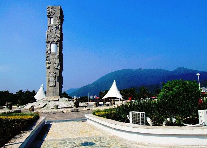 亞龍灣中心廣場,位于三亞市東南28公里處。廣場以圖騰柱向藍(lán)天升騰,以雕塑群向大地和大海延伸,其宏偉氣勢和獨(dú)特的藝術(shù)造型,以有限的藝術(shù)空間形式,引導(dǎo)我們的想象向無限的空間擴(kuò)展。廣場外圍設(shè)計(jì)的五組白色風(fēng)帆式的尖頂帳篷及大型彩色噴泉,給具有古老文化意蘊(yùn)的雕塑增添了現(xiàn)代氣息。