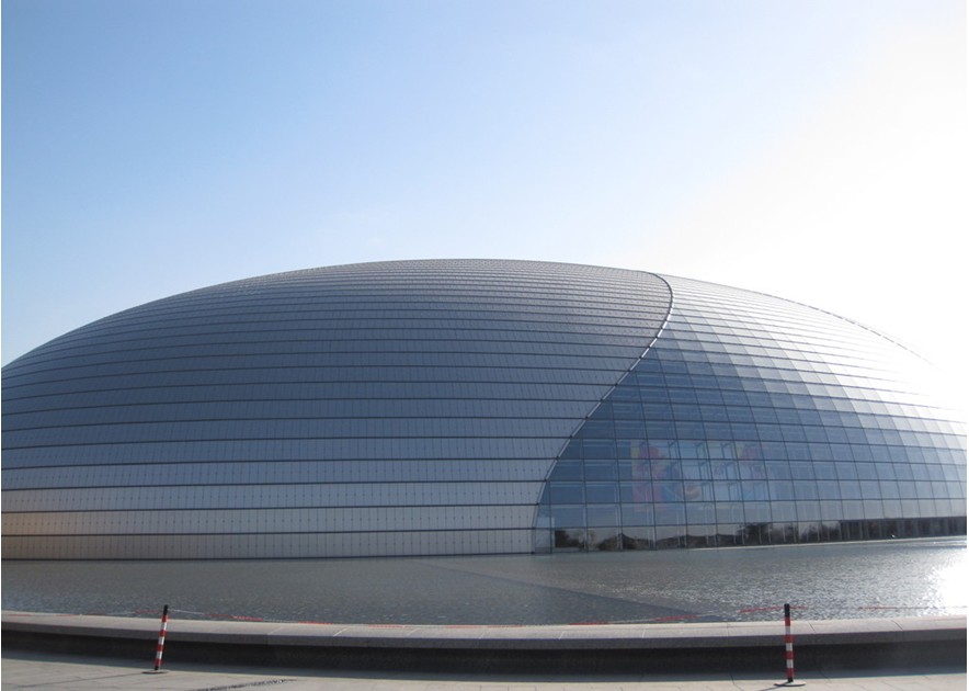 國家大劇院造型新穎、前衛(wèi),構思獨特,是傳統(tǒng)與現(xiàn)代、浪漫與現(xiàn)實的結(jié)合。