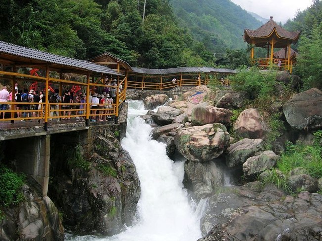 第一景段自龍崗地塔起至魚跳八仙潭止,俗稱"龍井峽"為巨溪流經(jīng)的塢谷,長約18公里。龍井峽內(nèi)奇峰秀瀑,危巖多峭,有"白馬巖中出,黃牛壁上耕"之譽(yù)。第二景段自魚跳華光橋起至上溪太子尖止,稱之"上溪峽",長約26公里,峽谷地勢(shì)高峻,水流湍急,山石奇趣,又是國寶雞血石的唯一產(chǎn)區(qū);第三景段稱"浙門峽",自太子尖起至馬嘯獅石垅村止,全長近30公里,峽谷內(nèi)山瀑疊生,石嵐?fàn)幥螕碛写笮∈T等知名度極高的奇觀妙景。