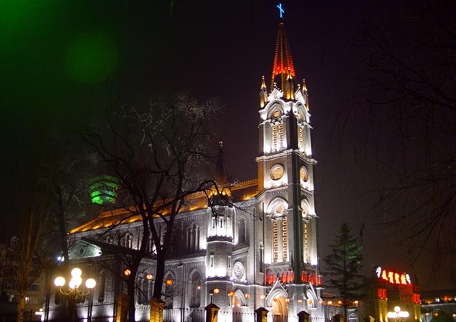清光緒二十四年(戊戌1898年),法國巴黎天主教外方傳教會神父蘭祿業(yè)和古若瑟從長春來吉林傳教。光緒二十八年(壬寅1902年)購買了今天主教堂所占的土地,開始籌建天主教堂。從1917年動工,費時10年,于民國十五年(丙寅1926年)落成。