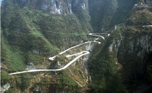 天門(mén)山盤(pán)山公路共有九十九道急彎,其中最為險(xiǎn)峻的一段是經(jīng)過(guò)科學(xué)的論證及設(shè)計(jì)才得以修建成功的,大家可以通過(guò)圖片看到其中公路之險(xiǎn)峻。