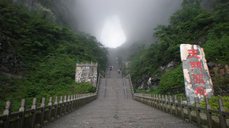 世界最高海拔天然穿山溶洞天門(mén)洞堪稱(chēng)傳奇的代表。天門(mén)洞懸于海拔1300余米的峭壁之上,高131.5米,寬57米,深60米,終年吐云納霧,震世撼俗。古往今來(lái),無(wú)論是帝王將相還是平民百姓都把天門(mén)洞作為祈福許愿的靈地。而天門(mén)洞,就像一首無(wú)聲的詩(shī),承載了無(wú)數(shù)人的夢(mèng)想,也給人無(wú)限的想象!從1999年世界特技飛行大師穿越天門(mén)開(kāi)始,天門(mén)山注定成為一個(gè)永遠(yuǎn)被世界所聚焦的傳奇之地!2006年,俄羅斯最高飛行戰(zhàn)將含淚吻別天門(mén),讓天門(mén)洞一度成為了一個(gè)不可逾越的神話;2007年,法國(guó)著名蜘蛛人打破神話,成功徒手攀越天門(mén),將生與死的絕壁芭蕾如花綻放,天門(mén)洞由此成為了奇跡誕生地的代名詞。