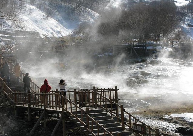 近幾年來,長(zhǎng)白山冬季冰雪旅游發(fā)展很快,而露天溫泉浴是最讓人們眼界大開的項(xiàng)目,泉外冰天雪地、冷風(fēng)習(xí)習(xí),水中熱氣繚繞、笑聲陣陣,一冷一熱對(duì)比分明,真是人生難得的奇妙經(jīng)歷。