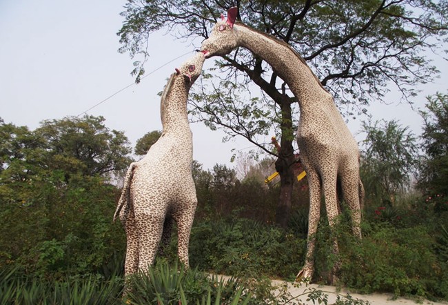 游覽區(qū)有槐樹、蒼松、綠椰等各種樹木20多萬株,翠竹10余萬株,綠化面種占90%以上。有桃花林、櫻花林、槐花林。花卉區(qū)有牡丹園、月季園、玫瑰園、菊花園等,百花競(jìng)放,姹紫嫣紅。動(dòng)物放養(yǎng)區(qū),養(yǎng)有駱駝、鴕鳥、山羊、銀雞、孔雀、鶴等,供游人觀賞逗趣。新建的滑草坡、情人橋、逍遙島、月亮湖、千秋湖等景觀。船停碧波上,人在畫中游。還設(shè)有菊花培育基地,培植各種菊花精品。