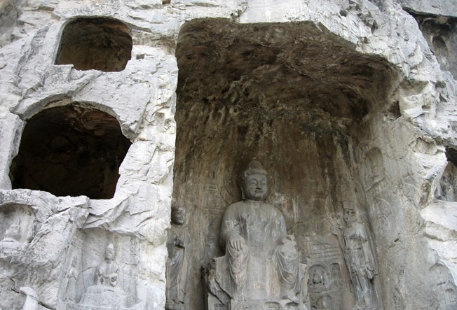 門石窟是中國(guó)石刻藝術(shù)寶庫(kù)之一,位于河南省洛陽(yáng)市南郊伊河兩岸的龍門山與香山上。開(kāi)鑿于北魏孝文帝遷都洛陽(yáng)之際,之后歷經(jīng)東魏、西魏、北齊、隋、唐、五代的營(yíng)造,南北長(zhǎng)達(dá)1公里,至今存有窟龕2345個(gè),造像10萬(wàn)余尊,碑刻題記2800余品。其中“龍門二十品”是書法魏碑精華,褚遂良所書的“伊闕佛龕之碑”則是初唐楷書藝術(shù)的典范。龍門石窟延續(xù)時(shí)間長(zhǎng),跨越朝代多,以大量的實(shí)物形象和文字資料從不同側(cè)面反映了中國(guó)古代政治、經(jīng)濟(jì)、宗教、文化等許多領(lǐng)域的發(fā)展變化,對(duì)中國(guó)石窟藝術(shù)的創(chuàng)新與發(fā)展做出了重大貢獻(xiàn)。2000年入選世界文化遺產(chǎn)。