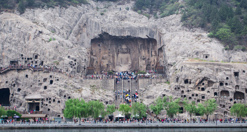 龍門石窟是中國(guó)三大石窟之一(另外兩大石窟為:山西云岡石窟、甘肅敦煌莫高窟),位于洛陽(yáng)市城南6公里的伊闕峽谷,這里香山和龍門山兩山對(duì)峙,伊河水從中穿流而過(guò),古稱“伊闕隋煬帝遷都洛陽(yáng)后,將把皇宮的正門正對(duì)伊闕,從此,伊闕便被人們習(xí)慣的稱為龍門。龍門自古為險(xiǎn)要關(guān)隘,交通要沖,向?yàn)楸冶貭?zhēng)之地。因山清水秀,環(huán)境清幽,氣候宜人,被列入洛陽(yáng)八大景之冠,唐代大詩(shī)人白居易曾說(shuō):“洛都四郊,山水之勝,龍門首焉”,此處素為文人墨客觀游勝地;又因石質(zhì)優(yōu)良,宜于雕刻,故而古人擇此而建石窟。這里青山綠水、萬(wàn)象生輝,伊河兩岸東西山崖壁上的窟龕星羅棋布、密如蜂房。