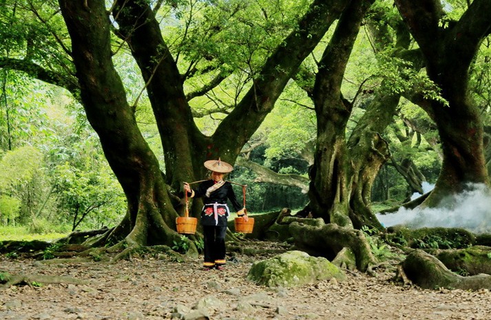 楊家溪源自柘榮東山頂和目海尖兩大高峰,繞太姥山麓,其中下 游流域大致分為九鯉溪與楊家溪,自福鼎烏杯始至鼎霞交界的湖里, 稱(chēng)九鯉溪,從蘭兜至渡頭為楊家溪。九鯉溪流程約7公里,沿途有將 軍潭、鯉魚(yú)墓、九鯉湖等名勝景點(diǎn)和新建的九鯉電站景區(qū);楊家溪流 程約8公里,有七曲十二瀨(淺急之灘),沿流潭、瀨、灘交替分布, 溪水清澈見(jiàn)底。兩岸峽谷青山郁郁蔥蔥,奇花異草紛呈異彩。樟樹(shù)、 楓樹(shù)、櫸樹(shù)、榕樹(shù),毛竹、綠竹、花竹、方竹、紫竹、黃竹、金竹, 杜鵑、黃楊、雀梅、赤楠、蘆葦?shù)染善植迹募境G啵ㄏ泺B(niǎo)語(yǔ)。版權(quán)所有山東聊城聊之旅國(guó)際旅行社有限公司,轉(zhuǎn)載必究! 尤為引人注目的是兩岸溪灘;既有罕見(jiàn)的樟樹(shù)成林,呈帶狀連綿十多 里,常年翠綠;又有蘆荻片片,春夏碧綠成茵,初冬白絮遍野;還有 萬(wàn)株連片的楓樹(shù)林,為江南面積最大的楓香林,深秋紅葉輝映,酷似 緋云停駐。緊鄰楓香林的是十幾棵大古榕樹(shù),據(jù)說(shuō)植于南宋初期,歷 經(jīng)800多年滄桑,依然翠綠成蔭。版權(quán)所有山東聊城聊之旅國(guó)際旅行社有限公司,轉(zhuǎn)載必究!其中一株樹(shù)干周長(zhǎng)12.6米,主干 中空,有7個(gè)洞口可容人入洞。乘筏順流全程約需2小時(shí),或飛奔于 礫石堆積、浪花飛濺的淺灘,或傲游在碧水瀠洄、一平如鏡的深潭; 時(shí)而飛筏破浪有驚無(wú)險(xiǎn),時(shí)而隨流飄蕩逍遙自在,瞬間變化萬(wàn)千,令人嘆絕。