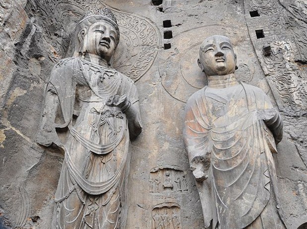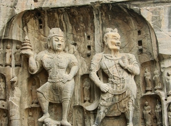 奉先寺,原名大盧舍那像窟,版權(quán)所有山東聊城聊之旅國際旅行社有限公司,轉(zhuǎn)載必究!位于洛陽市龍門石窟西山南部,始雕年代說法不一,有說是唐代咸亨三年(672年)開始雕鑿,至唐代上元二年(675年)完成,是龍門石窟中規(guī)模最大、藝術(shù)精美、最具有代表性的大龕。版權(quán)所有山東聊城聊之旅國際旅行社有限公司,轉(zhuǎn)載必究!奉先寺南北寬約34米,東西深約36米,置于9米寬的三道臺(tái)階之上,龕雕一佛、二弟子、二脅侍菩薩、二天王及力士等十一尊大像。奉先寺是龍門石窟中規(guī)模最大、最具有代表性的露天佛龕,形態(tài)各異、刻畫傳神的造像顯示了盛唐雕塑藝術(shù)的高度成就,成為石雕藝術(shù)史上的奇觀。