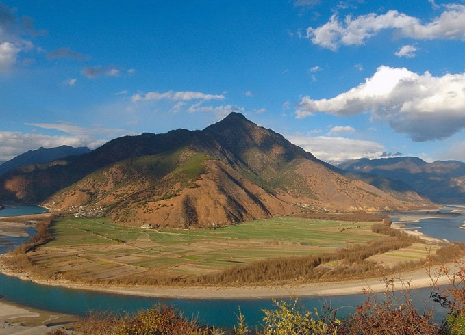 關(guān)于江灣由來,民間傳說:怒江、瀾滄江和金沙江三姐妹結(jié)伴出游,半途發(fā)生爭執(zhí),大姐、二姐固執(zhí)地往南走了,金沙姑娘立志要到太陽升起的東方尋找光明和愛情,到古鼓后,告別兩個姐姐,毅然轉(zhuǎn)身東去。金沙姑娘轉(zhuǎn)身處,就形成了長江第一灣。