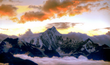 另一條翻越哈巴山的一個(gè)丫口,需3-4天時(shí)間,途中過(guò)冰大板、彎海、大尖山平牧場(chǎng)和哈巴村,最后至納西東巴圣地白水臺(tái),將從海拔約1700 米的下虎跳爬至海拔約4750米的哈巴雪山丫口。