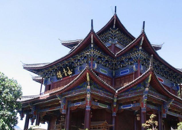 木牌坊上大書“天雨流芳”四字,乃納西語"讀書去"的諧音,體現(xiàn)了納西人推崇知識,重視教育的靈心慧性;石牌坊"棟梁斗拱,通體皆石,堅(jiān)致精工,無與敵者",是國內(nèi)石建筑的精品;議事廳端莊寬敞,氣勢恢宏,是土司議政之殿;萬卷樓集兩千年文化遺產(chǎn)之精粹,千卷東巴經(jīng),百卷大藏經(jīng)、六公土司詩集、眾多名士書畫,皆是翰林珍奇,學(xué)苑瑰寶;護(hù)法殿又稱后議事廳,是土司議家事之殿;光殿樓乃后花園門樓,史稱其建筑"稱甲滇西";玉音樓是接圣旨之所和歌舞宴樂之地;三清殿是木氏土司推崇道家精神的產(chǎn)物。而獅山古柏深處,還有木氏土司祭祖,祭天,祭大自然神"署"的杜宗教活動(dòng)場所。