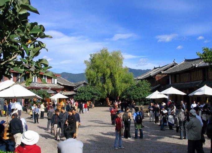 四方街是麗江古城中心,交通四通八達(dá),周圍小巷通幽,據(jù)說是明代木氏土司按其印璽形狀而建。這里是茶馬古道上最重要的樞紐站。明清以來各方商賈云集,各民族文化在這里交匯生息,是麗江經(jīng)濟(jì)文化交流的中心。