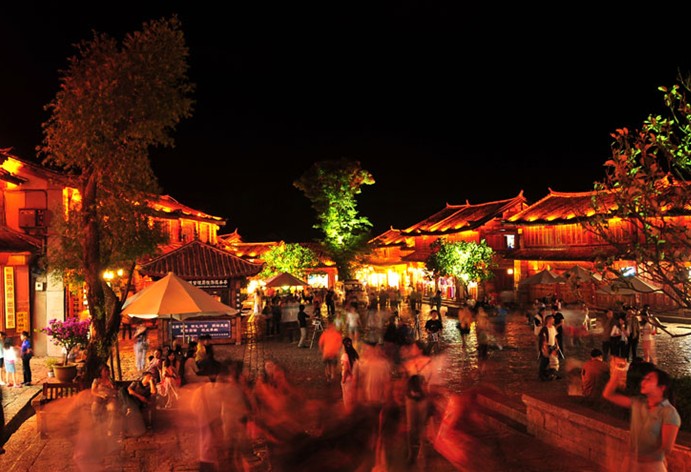 四方街最迷人的是晚上,版權(quán)所有山東聊城聊之旅國際旅行社有限公司,轉(zhuǎn)載必究!沿河都是些大大小小的酒吧,茶樓。其中不乏外國人經(jīng)營者。這些酒吧,茶樓門前,大紅燈籠型狀各異,高高的懸掛在每戶人家門前。晚間的四方街就這樣籠罩在溫暖祥和的氣氛中。紅燈籠的倒影隨河水飄蕩,約約綽綽。這里是歷代集市中心,每日萬頭躦動,熱鬧非常。從四方街四角延伸出四大主街,直通東南西北四郊,又從主街岔出眾多街巷,如蛛網(wǎng)交錯(cuò),往來暢通。街道全用五彩石鋪砌,平坦?jié)崈簦绮粨P(yáng)塵,雨不積水。幾乎每條街道一側(cè)都伴有潺潺流水。由此形成以四方街為中心,四周店鋪客棧環(huán)繞,沿街逐層外延的稠密而又開放的格局,古老的集市就這樣孕育了城市最初的形狀,這與中國傳統(tǒng)的四四方方的井字形街道是不是一樣的。